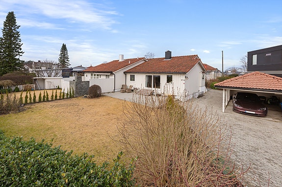 Pent oppusset familiebolig på en stor og romslig tomt. Boligen som går over 2 plan har en meget gjennomtenkt planløsning og kan passe både barnefamilier og godt voksne.