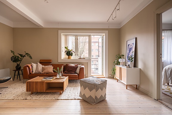 Velkommen til denne delikate, store og luftige 3-romsen med gjennomgående planløsning, store, åpne rom, god takhøyde og store vindusflater som gir gode lysforhold og en åpen, luftig atmosfære.