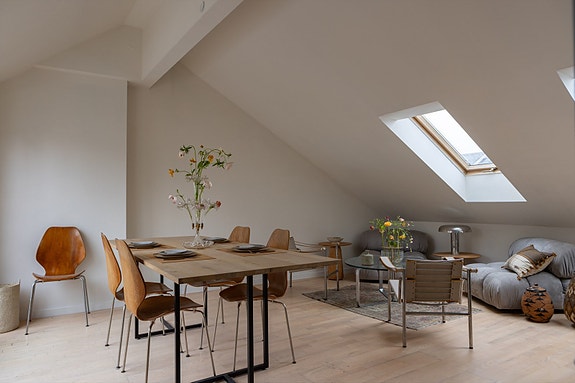 Velkommen til Ole Vigs gate 20! Flott og innbydende toppleilighet med takterrasse og en god planløsning i hjerte av Majorstuen. Foto: Line Dammen