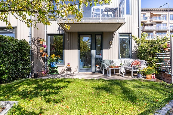 - Herlig terrasse på 14 m² med direkte adkomst til sameiets felles hage