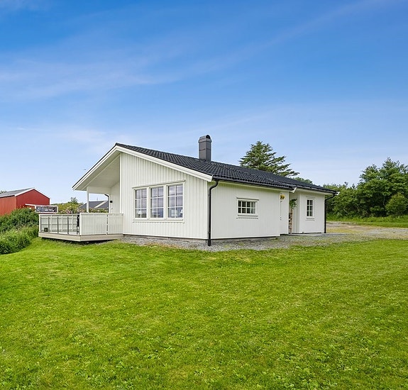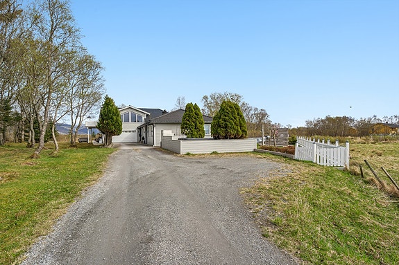 Velkommen til Dønnaveien - en flott eiendom med usjenert beliggenhet, egen strandlinje, nydelig utsikt og gode solforhold. Eiendommen er pent organisert og fremstår som ryddig og velstelt. Foto: EFKT v/Lene Blomsøy.