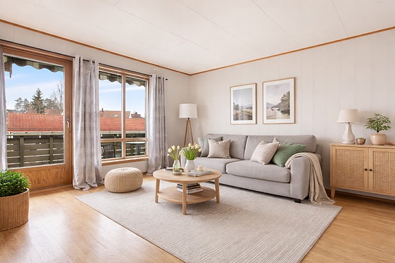 Eiendomsmegler 1 v/Jonas Lundby har gleden av å presentere Grueknausen 6! Foto: Hege Leren (Bildet er digitalt stylet)