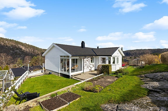 Nyrenovert og tiltalende enebolig med landlig beliggnhet i umiddelbar nærhet til Nodeland sentrum samt kun 13 km fra Kristiansand sentrum.