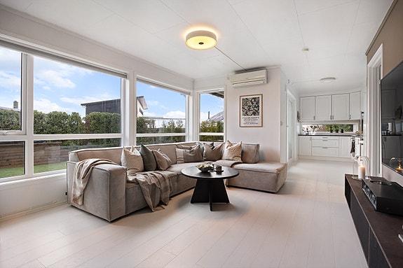 - Romslig stue (21,9 m²) med store vindusflater og godt lysinnslipp