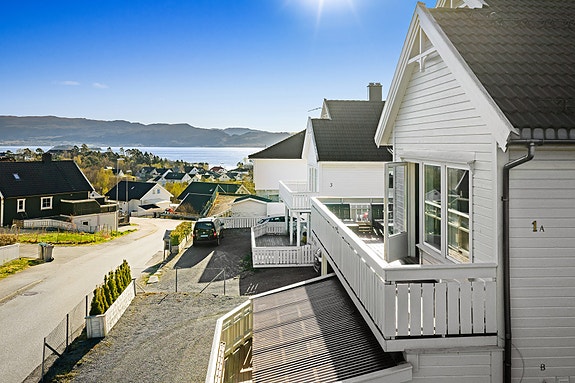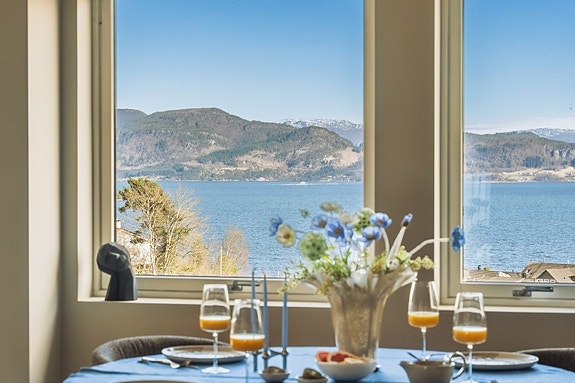 Praktfull utsikt mot sjø og naturskjønne omgivelser.