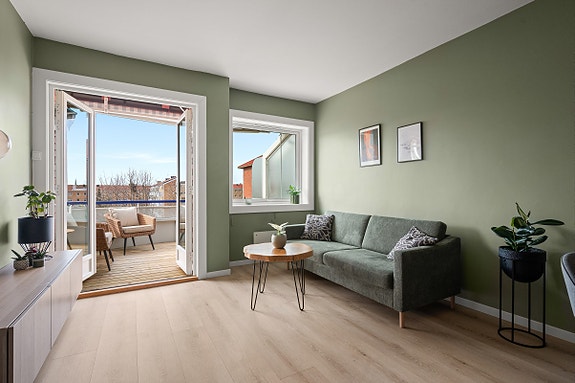 Lys og gjennomgående 3-R toppleilighet med lite innsyn og flott utsikt | Solrik balkong på 9 m² | Ettertraktet boområde