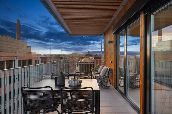 Balkong med god plass og fine oppholdssoner.