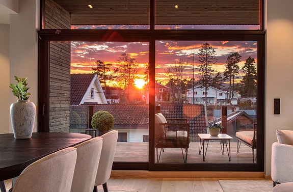 Den vestvendte beliggenheten gir gode solforhold og flott utsyn. (Ai generert bilde, kun illustrasjon)