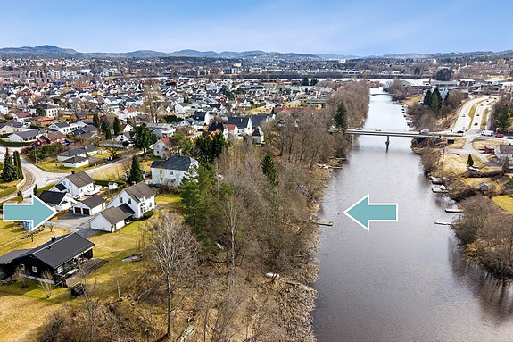 Eiendommen er en av få som har eiendomsgrense til Falkumelven - strandlinje med egen brygge!