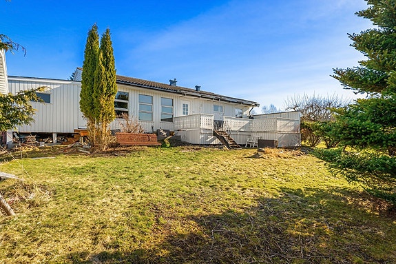 Boligen har en flott intern beliggenhet, med solrik terrasse og hage. Med alt på ett plan gjør det hverdagen enkel, og den gode planløsning består av entré, to ganger, bad, vaskerom, fire soverom, stue, spisestue og kjøkken. I tillegg er det en carport i tilknytning til boligen. Boligen har et generelt moderniseringsbehov, som gir gode muligheter for deg som ønsker å sette sitt eget preg på hjemmet.