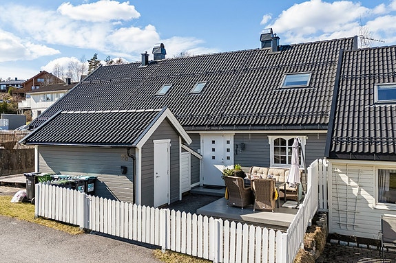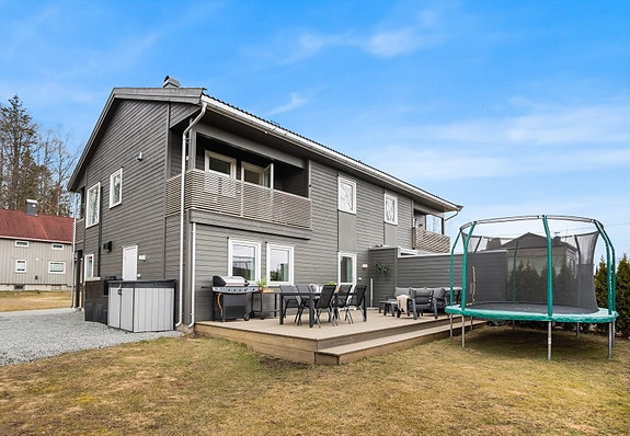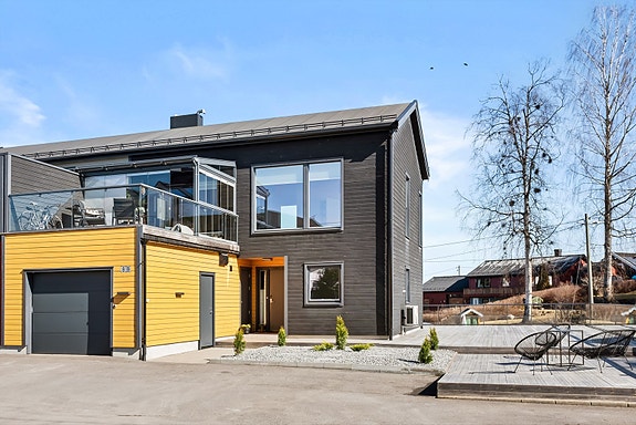 Velkommen til Skogvegen 8B! Dette er en moderne og innholdsrik vertikaldelt tomannsbolig fra 2019, med integrert garasje og store flotte uteplasser.