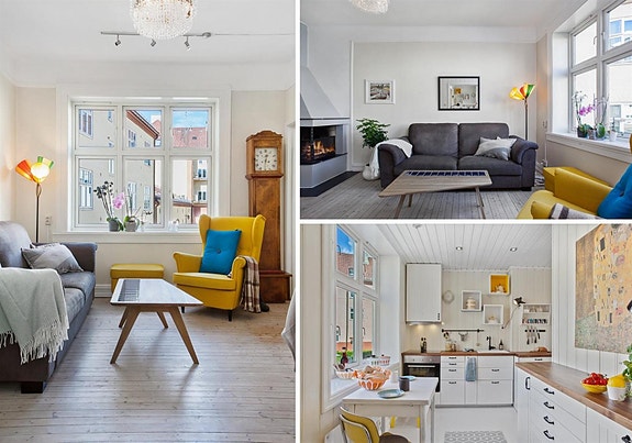 Forventningene du får ved ankomst blir tilfredsstilt inne i leiligheten. Den gode takhøyden, sammen med de store vindusflatene, gir en lys og luftig romfølelse. Peisen i stua skaper en varm og hjemmekoselig atmosfære. Alle rommene i leiligheten er store og det originale tregulvet gjør at leiligheten bevarer sitt historiske preg.