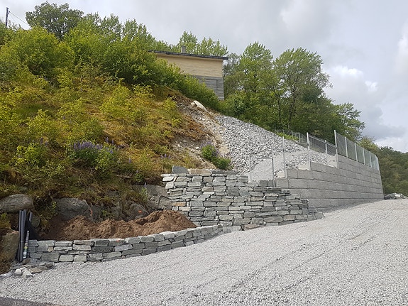 Det har i forbindelse med gravearbeid hos kiwi, blitt gravd bort noe av det ene hjørnet på tomten. Dette er nå erstattet med en skråning som er avsluttet med en mur nederst i skråningen.