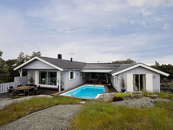 Flott beliggende på toppen av sørsiden av Søndre Sandøy, med panoramautsikt ut over skjærgården og Sverige. Nydelig skjærgård i umiddelbar nærhet, samt fine badeplasser.
