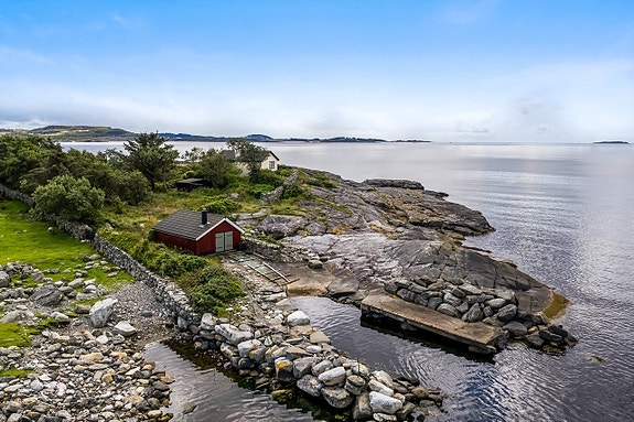 Unik, særegen og avskjermet eiendom ytterst mot sjø og hav med naust og 150 meter strandlinje.