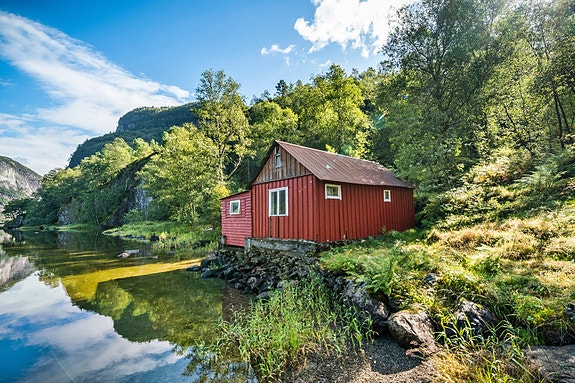 Helle - Nydelig beliggende hytte helt i sjøkanten - Her kan man fiske sjøørret og laks fra egen eiendom.