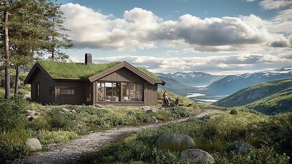 Planlagt hytte med 3 soverom på høyfjellet med unik utsikt til Midtre Syndinvannet og fjella i området.