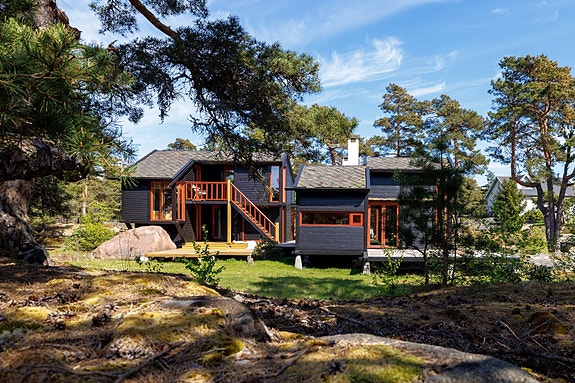 Hankø 38 hviler fint på et høydedrag på Hankø - en av Oslofjordens mest attraktive perler. Dette seilsportens mekka, byr på sjø, vakker natur og en overflod av aktiviteter - spesielt om sommeren: Fotball, volleyball, tennis, spa og turer til vakre strender for å nevne noen. Ingen biler, bare traller og et rolig tempo. Hytta fra år 2000 ligger midt mellom Trouville, Vadbukta og Varmbadsbukta, har tilbud om båtplass og disponerer to parkeringsplasser på land. Naturtomta på 3,6 mål består av svaberg og skjærgårdsvegetasjon og noe opparbeidet plen. Den japanskinspirerte atriumshytta fremviser arkitektonisk finesse og lekenhet. Tre bygninger knyttes sammen av terrasser i forskjellige høyder. Naturlige materialer, takhøyde, spennende lysvirkninger og store vinduer gir nær kontakt med naturen.