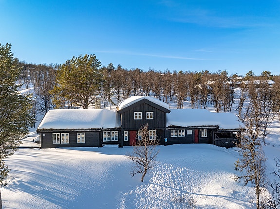 Hytta ligger i en harmonisk utbygget hyttegrend med store tomter og god avstand mellom hyttene.