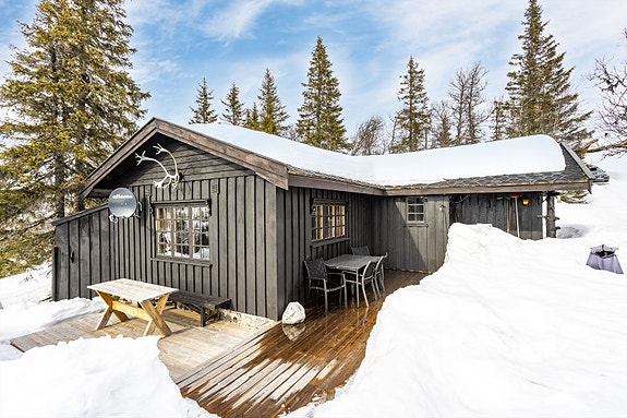 Det første som møter deg er den fantastiske utsikten til Haglebunatten. Hytten er svært innbydende i varm og lun stil. Hytten inneholder gang, bod, bad, 3 soverom, kjøkken og stue.