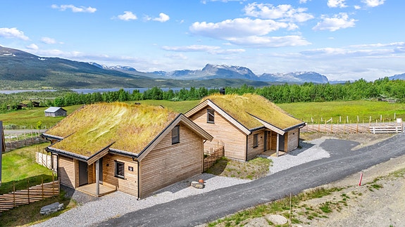 To moderne, nyoppførte hytter, levert av Tveitabru AS.