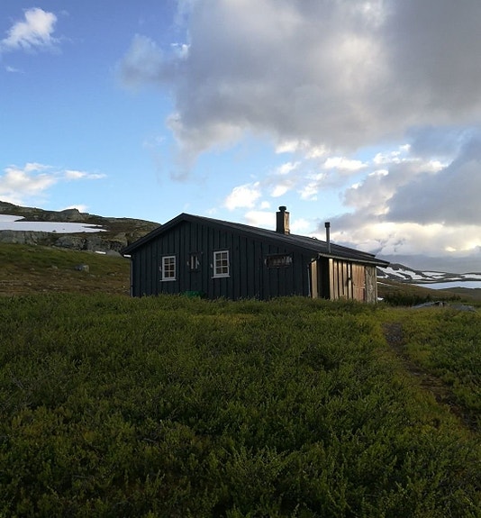 Her er det en "ordentlig" sjelfull fjellhytte med fjell og vidde rett utenfor døra.