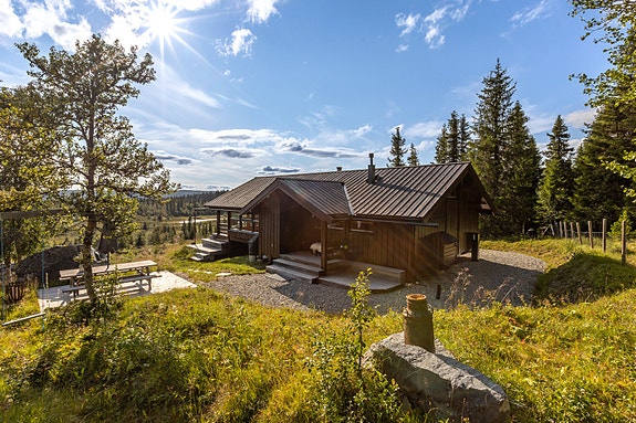 Pen og arealeffektiv hytte med usjenert beliggenhet - Stor tomt på over 1,7 mål med fantastisk utsikt - Rett v/​ skiløype