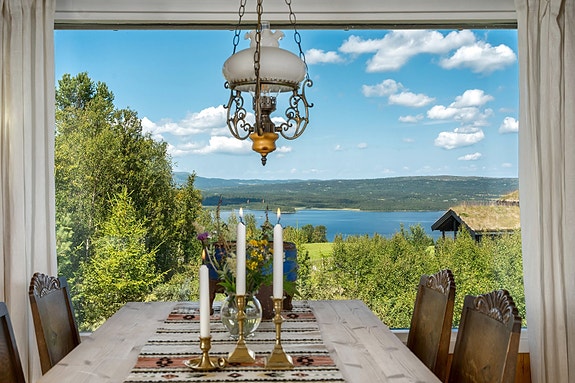 Velkommen til Haravegen 38 - Golsfjellet Vest. Sjarmerende hyttetun med anneks og stabbur. Fantastisk og vid utsikt over innsjø og vakker natur. Utsøkt panoramautsikt over Tisleia og over til Valdres- sida.
