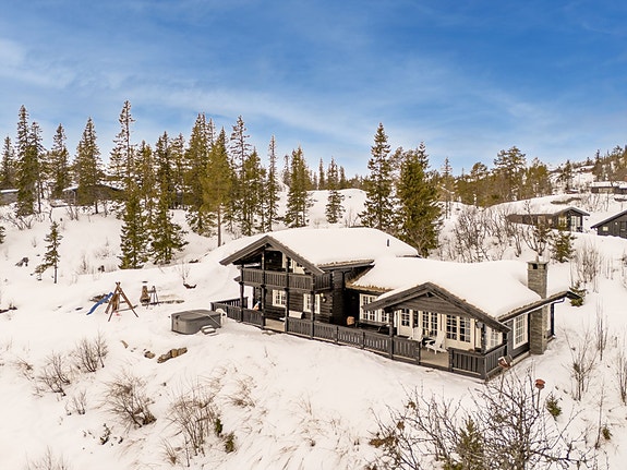 Eksklusiv familiehytte på ca. 855 m.o.h med panoramautsikt, fantastisk beliggenhet og høy standard - 5 soverom og 2 bad!