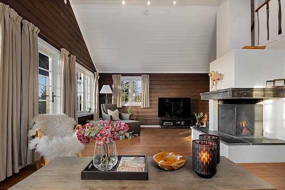 Her presenterer vi en pen, innbydende og meget funksjonell hytte med utrolig flott og sentral plassering på Sjusjøen. 2 mål eiet tomt, inngjerdet. Meget gode solforhold og et åpent og fritt terreng foran hytta, skjermet for innsyn. Her får du kort og trygg gangavstand til dagligvare, sportsbutikk, serveringssteder m.m. Umiddelbar tilgang til oppkjørte skiløyper og turstier som passer utmerket for hele familien. Hytta fremstår som gjennomført, solid og innholdsrik. Den har et romslig og hyggelig oppholdsrom med en lekker, åpen peis er et naturlig blikkfang. God takhøyde og rikelig med naturlig lys inn gir en god romfølelse og atmosfære i hytta. Det er installert vannbåren varme med bergvarme, noe som gir en energieffektiv hytte. Romslig sportsbod ved inngangsparti. Enkelt, separat uthus.