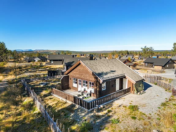 Oset Hyttefelt ligger vakkert til cirka 850 meter over havet ved Luftforsvarets feriested Vesle Skaugum på Golsfjellet.
