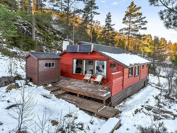 Er du glad i hytte- og friluftsliv, da er denne fritidseiendommen noe for deg! Hytta er utstyrt med stue/kjøkken, 3 soverom, gang og toalettrom/stellerom. Nyere solcelleanlegg for strøm samt innvendig vanncisterne med elektrisk vannpumpe som forsyner kjøkken, bad og dusj med kaldt og varmt vann (gassvannvarmer). To brønner benyttes til vaskevann. Drikkevannet medbringes.