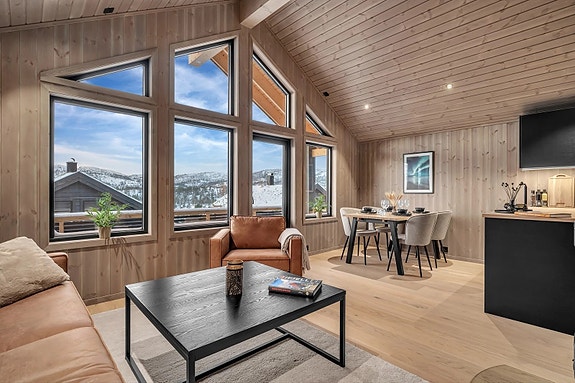 Tiltalende nyoppført hytte med attraktiv og solrik beliggenhet ved alpinanlegget.
