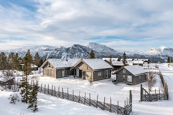 Hytta har en meget god fjellfølelse, store vindusflater, gasspeis forblendet med steinpanel av naturstein, lune sittekroker i alle himmelretninger, store terrasser, 3 soverom (godkjent for 4 med bruksendring av bod og deler av carport), 3 bad, og ekstra sengeplasser på hemsen og i annekset.