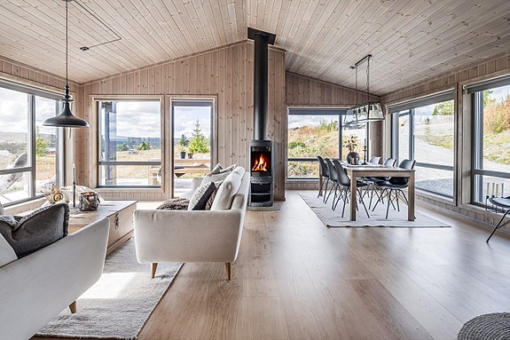 Hytta ligger svært solrikt til med panoramautsikt fra Nesfjellet mot Åkrefjell, videre over Bruset mot Såtenatten. Perfekt solgang.