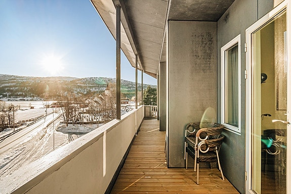 Moderne 3-roms toppleil. over to plan. To solrike altaner. Flotte fellesarealer med bl.a. basseng. 15 min fra Myrkdalen.