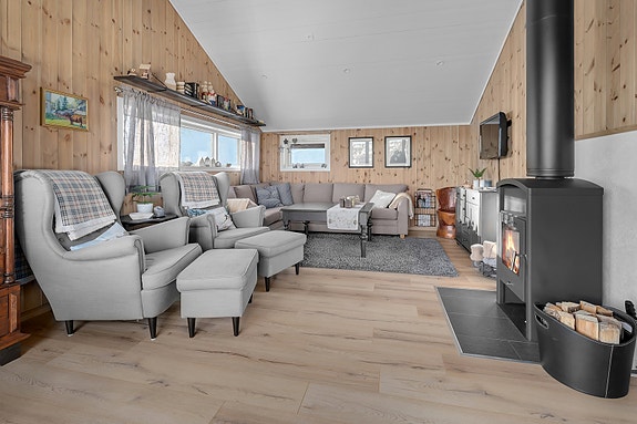 Flott renovert hytten med attraktiv beliggenhet sentralt på Løyningsknodden. Innhold: Vindfang, 2 skap boder, gang, stue/kjøkken, bad/vaskerom og 2 soverom. Hems lav takhøyde med gang og 2 innredet rom benyttet som soverom (Ikke godkjent i Åseral kommune for varig opphold)