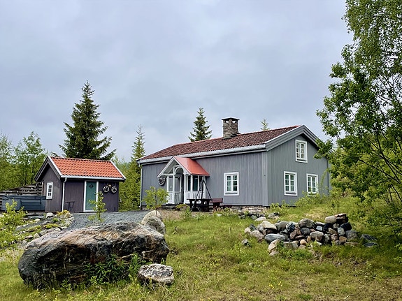 Fritidsboligen er en ca. 400 år gammel tømmerbygning som er flyttet fra Lena.