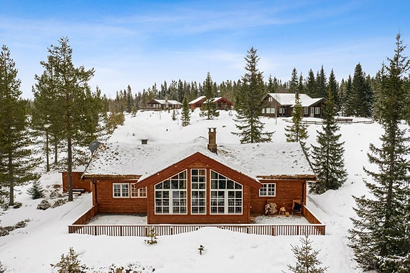 En moderne hytte fra 2008 med hems, flislagt terrasse og flott utsikt. Hytta har en smart planløsning med separat inngang til bod/vaskerom der du kan fikse skiene og skifte tøy. Hovedinngang er romslig med fliser og varmekabler. Stuen har stor takhøyde med stor vindusflate så du kan nyte utsikten fra sofakroken.