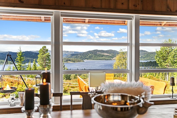 Flott og solid gjennomført hytte med unik og usjenert beliggenhet, panoramautsikt og svært gode solforhold