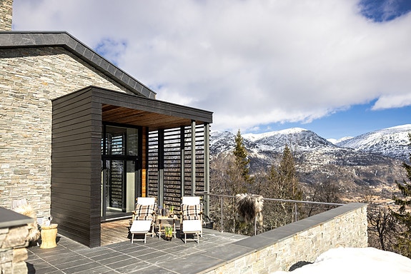 - Hytta er kledd i skifer som krever minimalt med vedlikehold