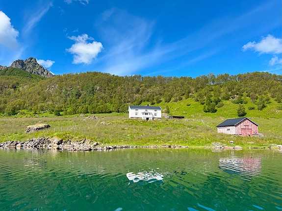 Bygninger er beliggende i østlig hellende terreng, i landlige omgivelser uten annen bebyggelse i nærheten, med fri og meget god utsikt mot sjø og fjell.