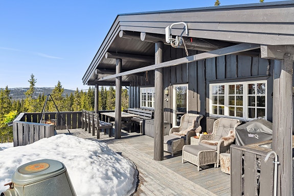 Høytliggende hytte med nærhet til Bittermarka - Stor tomt - Stor terrasse - Innlagt strøm