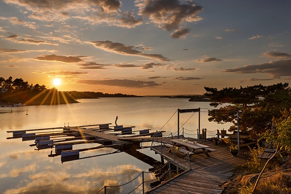 Båtplass og nydelige solnedganger fra felles brygge.