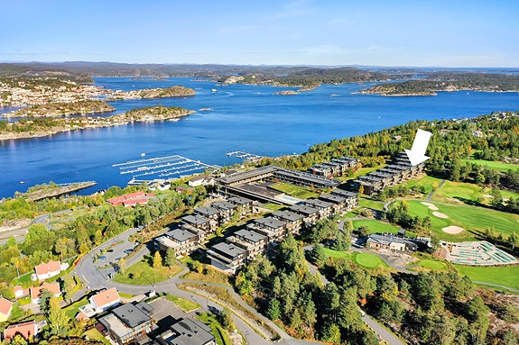 Flott beliggende fritidsleilighet med to terrasser og fantastisk utsikt over Kragerøskjærgården og golfbanen.