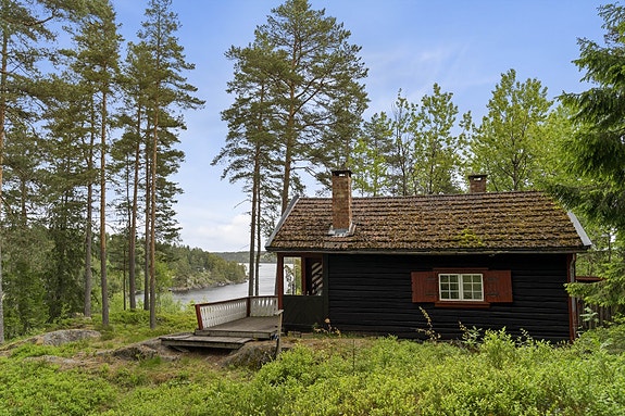 Sjarmerende tømmerhytte med utsyn over Glomma og Øyeren -strøm/vann/bilvei nesten helt fram -300m til badeplass/brygge