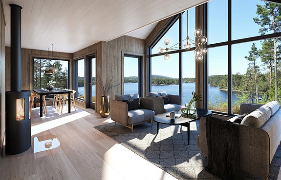 Velkommen til Skoretjønnheia! Hytta er prosjektert av Eiken hytter som fritidsbolig i feltet. Du har muligheten til å kjøpe en komplett hytte til en svært fordelaktig pris.