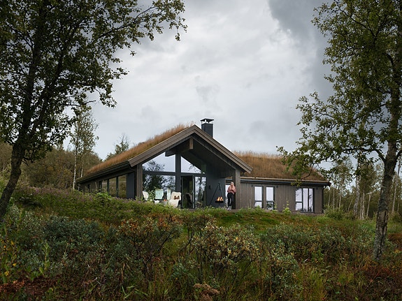 Sjemmedalhytta 140 er en vinkelhytte med lav mønehøyde og lune uterom. Den smelter naturlig inn i terrenget og gir en diskret, men stolt tilstedeværelse i landskapet.