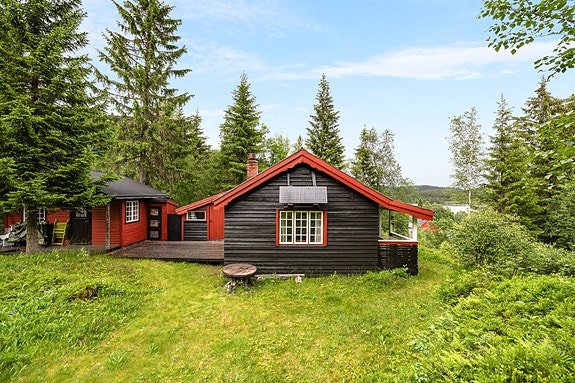 Koselig hytte beliggende på en kolle helt for seg selv. 2 soverom i hytta - 2 soverom i anneks