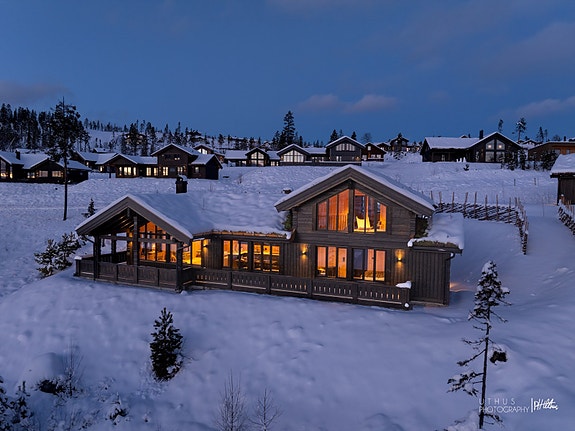 Hytta ligger på en av de flotteste tomtene i området, med sol fra morgen til kveld og turterreng rett utenfor døren. Her får du 4 soverom, oppstugu med utsikt, 2/3 bad, badstue og stor terrasse mot sør og vest delvis overbygget for helårsbruk. Praktisk planløsning, to boder og lagringshems gir god plass til hele familien.